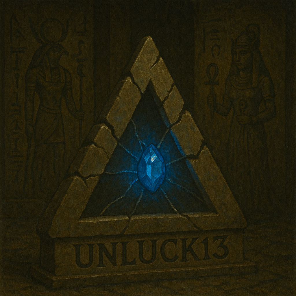 In ancient Egypt, triangles were sacred as pyramid symbols reaching to the gods. Breaking the triangle disrupted cosmic balance and brought misfortune. UNLUCK13 profits from this disruption, turning curses into opportunities.